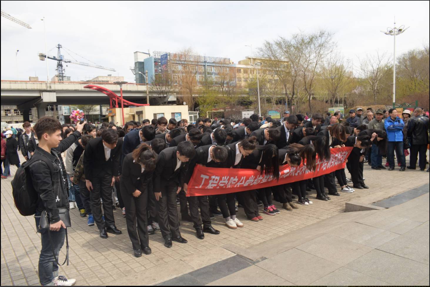 全体学员向抗日英雄三鞠躬表达敬意
