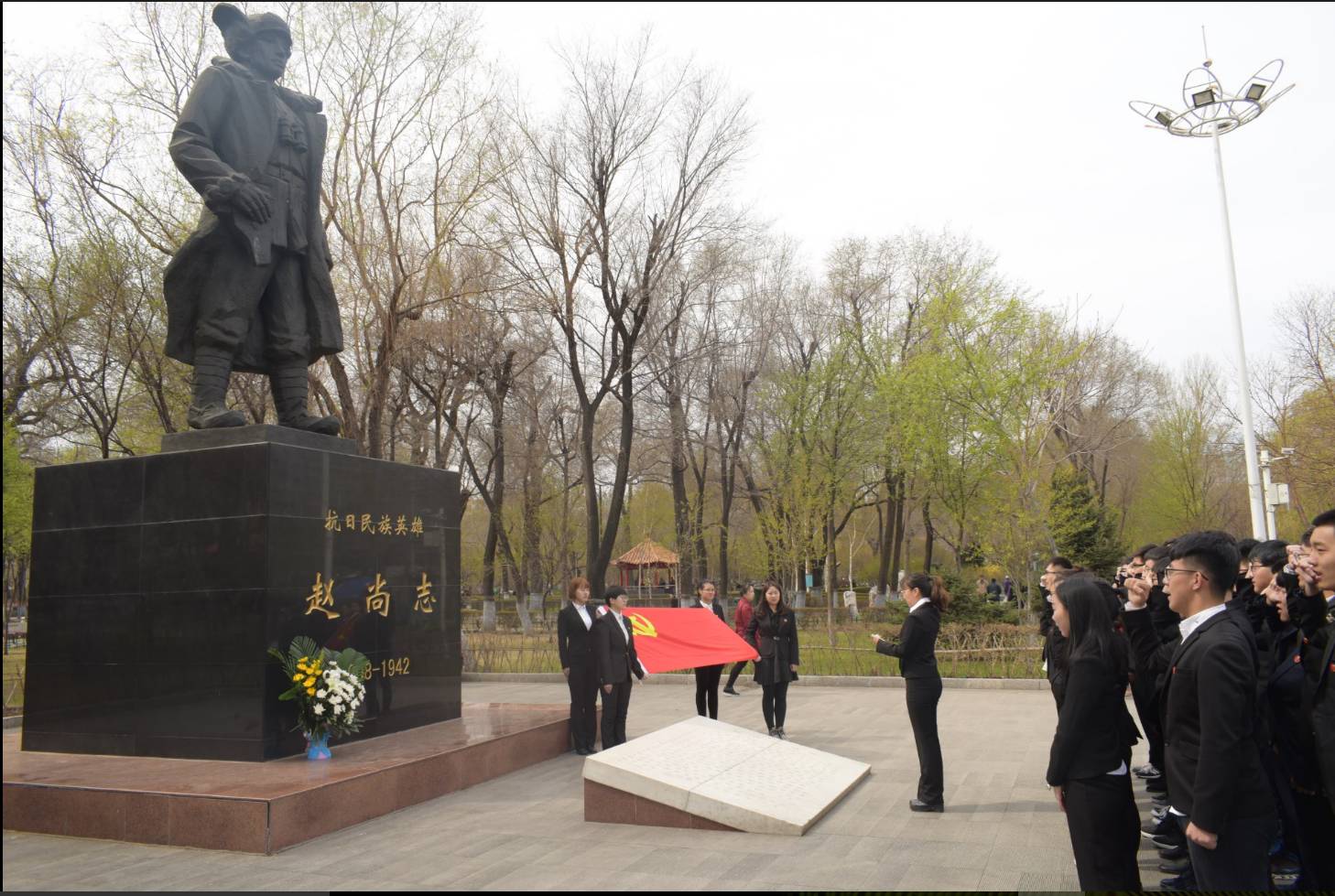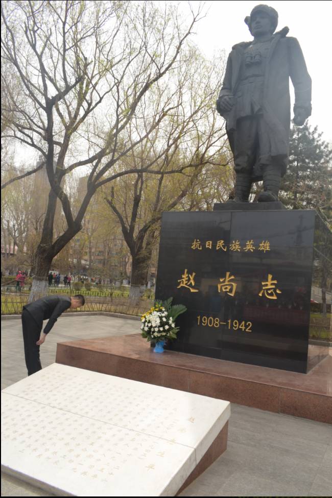 入党积极分子代表向赵尚志将军塑像敬献鲜花