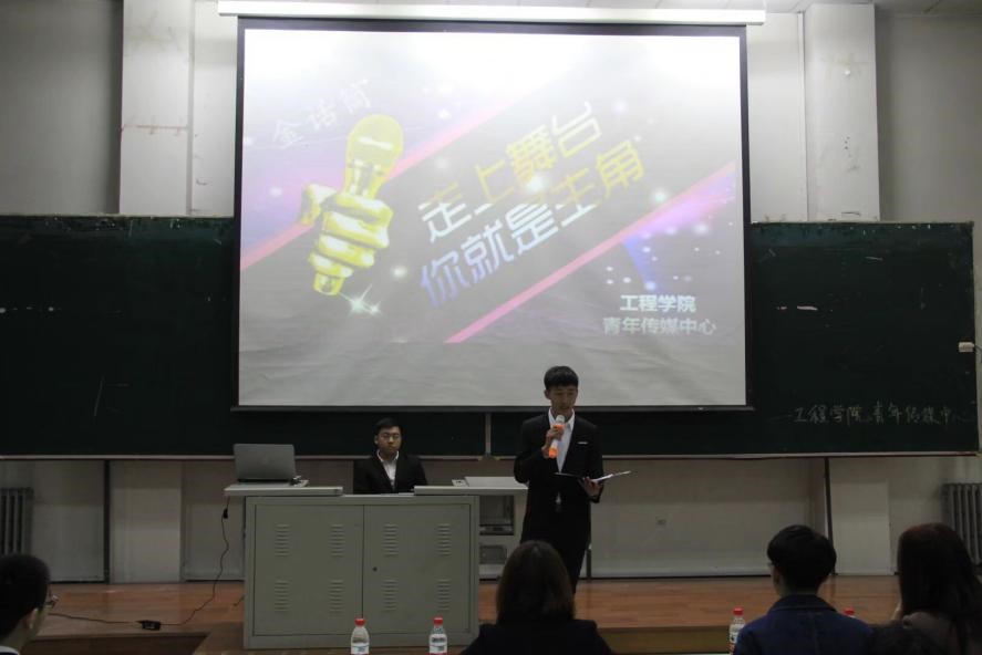 为了丰富工程学院学生课余生活,鼓励大家积极展现自己的才艺,发掘优秀人才,激发学生潜能,同时挖掘具有主持能力的同学,工程学院青年传媒中心4月12号晚6点半在研楼367举办了“金话筒”主持人大赛。